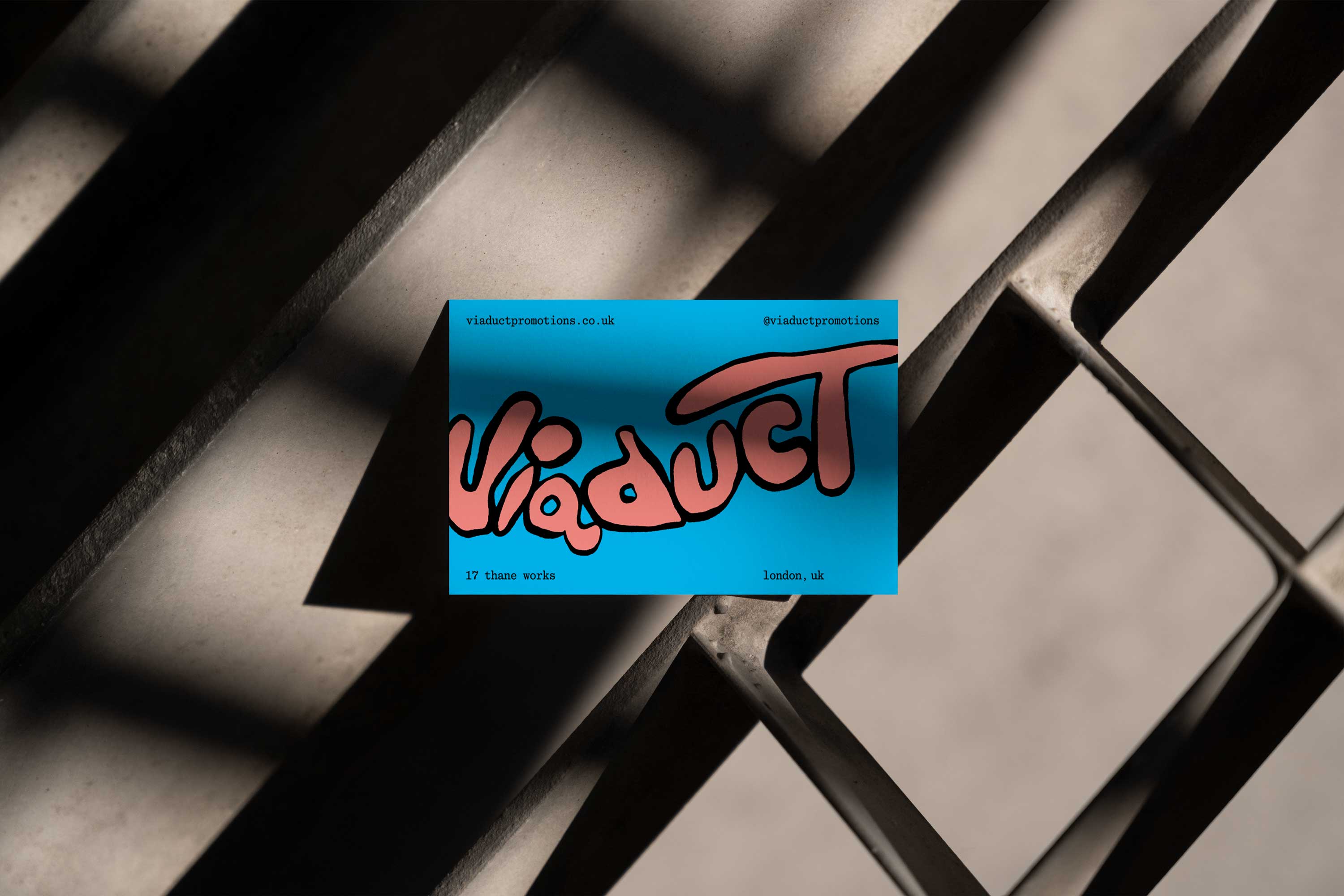 I hand-drew the new Viaduct logo from scratch, keeping the energy and immediacy of something made by human hands while lifting it to a level of craft the original never had. The lettering has a confident, slightly graffiti-influenced weight that reads immediately as London and independent, but with enough refinement to work across professional contexts. The identity rolled out across street-level applications: posters, flyers, outdoor advertising, merch including t-shirts and tote bags, and a website. Every touchpoint reinforces the same feeling: ten years in, still doing it properly.